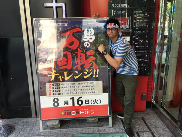 8月16日に1万回転チャレンジの舞台となったのは、大阪府大阪市にある「ARROWナンバHIPS」。
