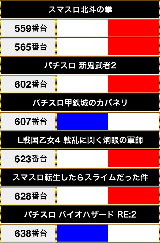 おなじくスマスロである『L戦国乙女4 戦乱に閃く炯眼の軍師』の623番台や『スマスロ転生したらスライムだった件』の628番台もプラスptを記録。