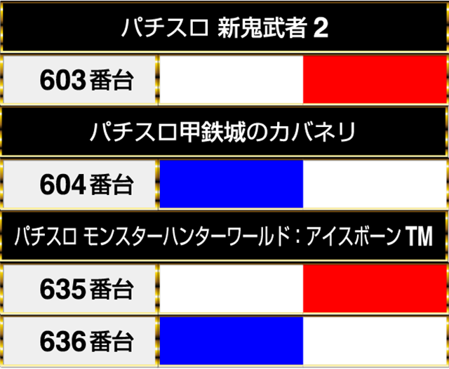 『パチスロ 新鬼武者2』の603番台がプラスptを記録。