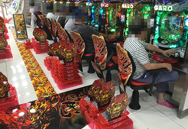 17時を過ぎた頃の4円パチンコでは、「CR牙狼 魔戒ノ花」が盛況。機種の特徴を活かしているといった姿が多く、プレイヤーも満足そうな表情を浮かべていた。