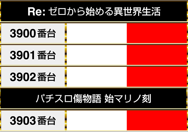 『Re:ゼロから始める異世界生活』の3台は『パチスロ傷物語 始マリノ刻』の1台と並んでプラスpt!!