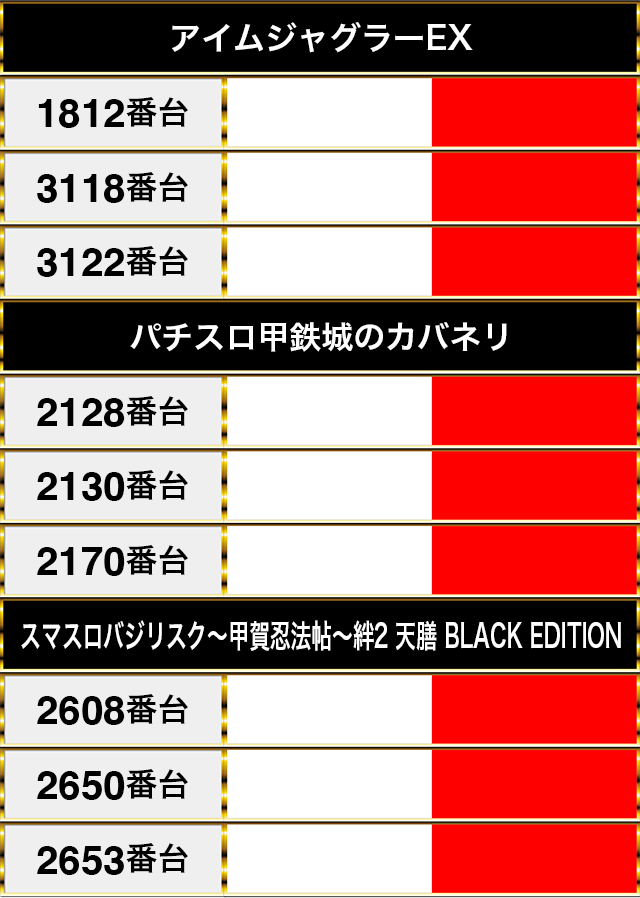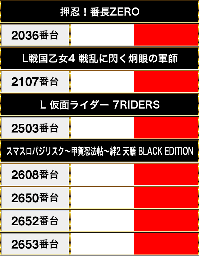 『パチスロ甲鉄城のカバネリ』や『スマスロバジリスク~甲賀忍法帖~絆2 天膳 BLACK EDITION』も空き台が少なく、たくさんの魅力的なシーンを確認している。