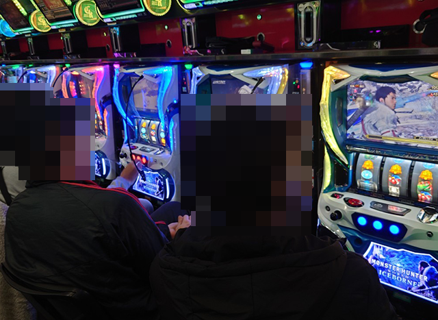 『パチスロ モンスターハンターワールド:アイスボーンTM』と『マイジャグラーⅤ』も4台が並んでプラスpt!!