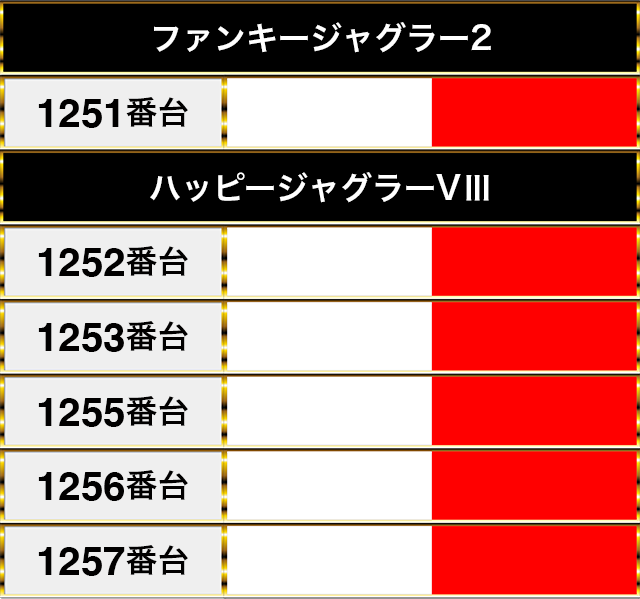 となりにある『ファンキージャグラー2』の1台をあわせると、6台が並んでプラスptとなった。