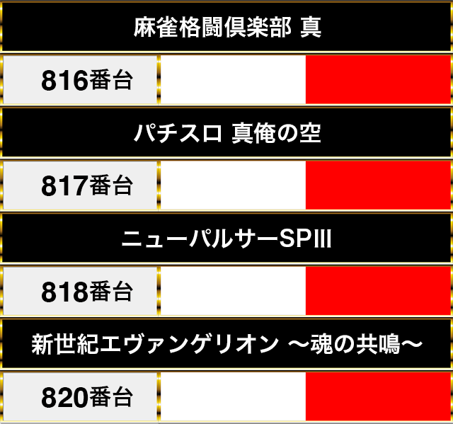 816番台の『麻雀格闘倶楽部 真』から820番台の『新世紀エヴァンゲリオン 〜魂の共鳴〜』までで遊技を楽しむプレイヤーたちにも目をひかれた。