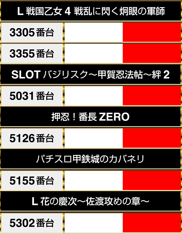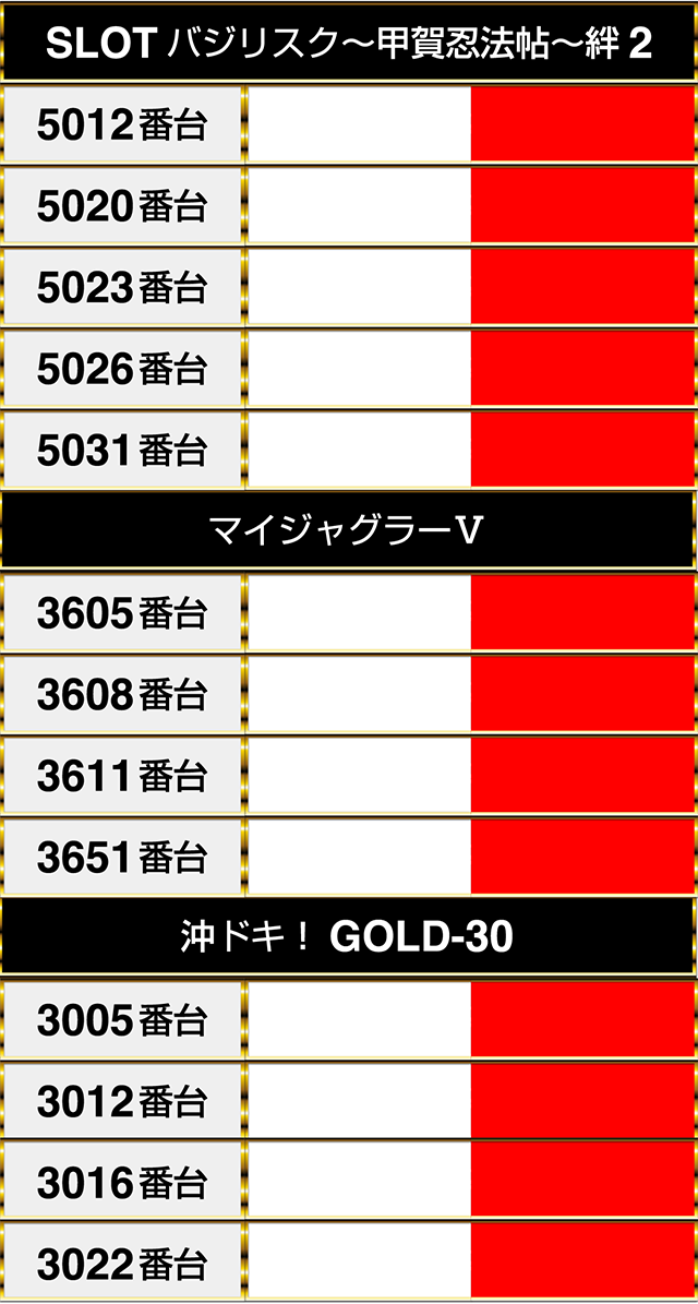 『SLOTバジリスク~甲賀忍法帖~絆2』や『マイジャグラーⅤ』、『沖ドキ!GOLD-30』も複数の台がプラスptとなった。