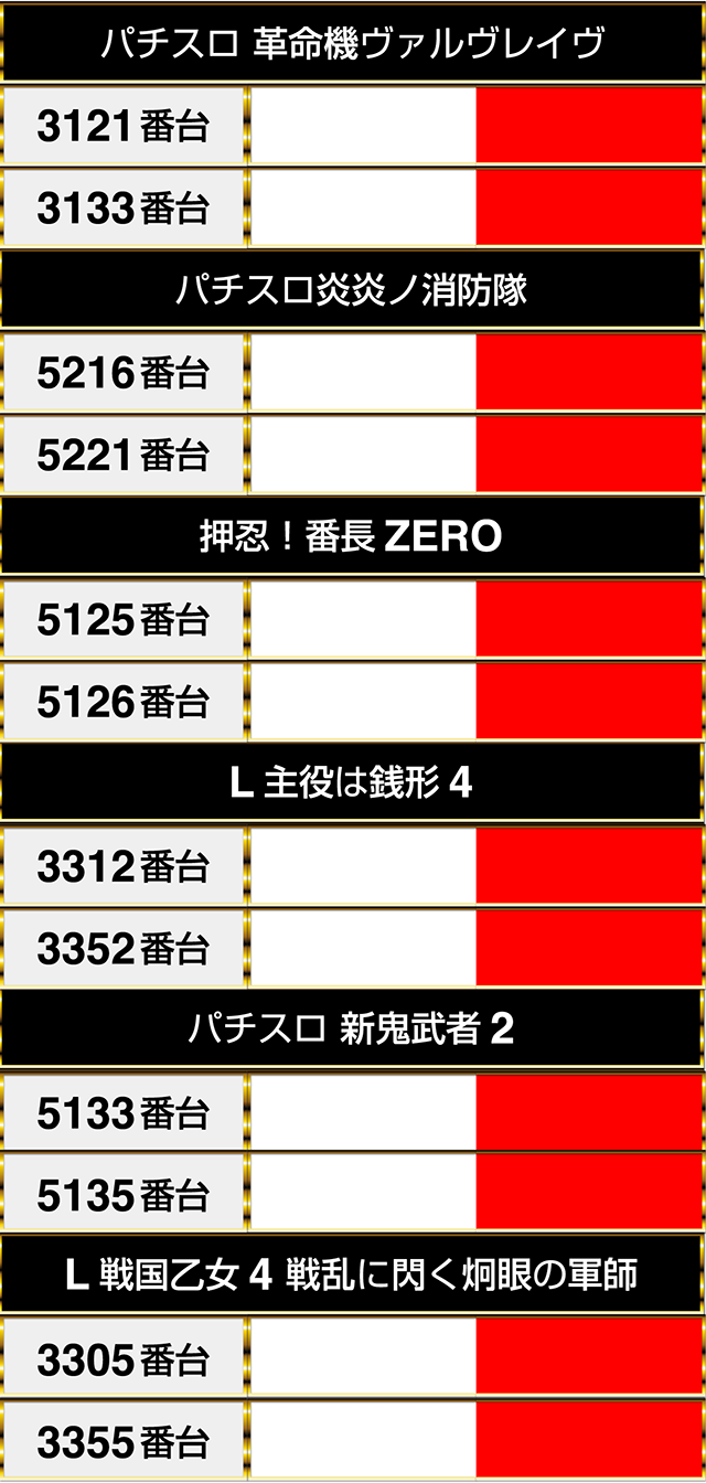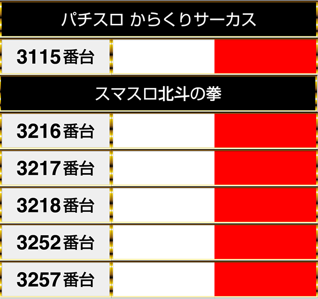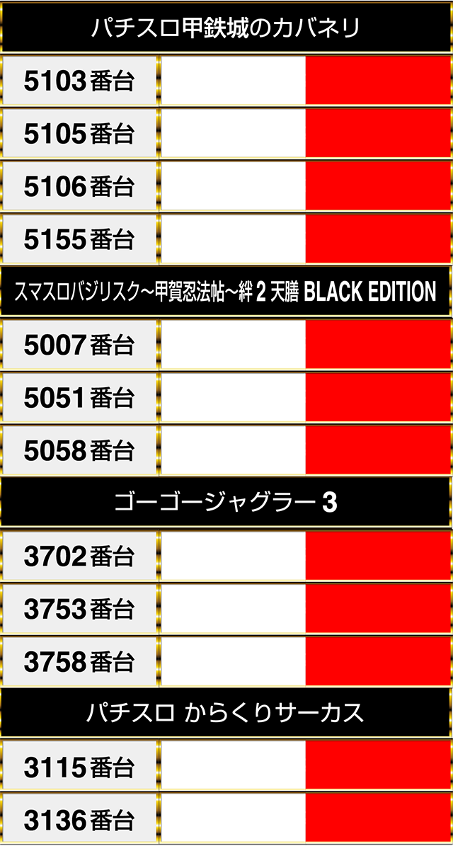『パチスロ からくりサーカス』の3115番台や『L花の慶次~佐渡攻めの章〜』の5302番台もプラスptを記録した。