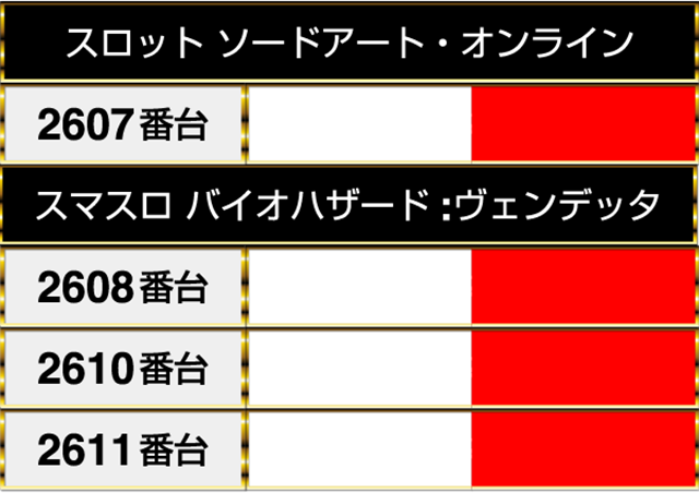『スロット ソードアート・オンライン』の1台は『スマスロ バイオハザード:ヴェンデッタ』の3台と連なってプラスptを記録した。