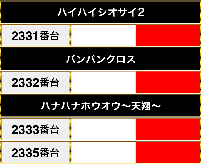 並びで設置されており、閉店時には2331番台から2335番台までが連なってプラスptを記録!!