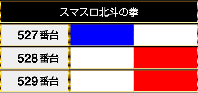 閉店時には『スマスロ北斗の拳』の528番台と529番台が並んでプラスptを記録。