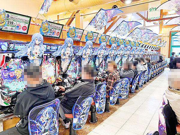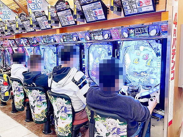 15時ごろの4円パチンコでは、「ぱちんこ シン・エヴァンゲリオン Type レイ」や「e Re:ゼロから始める異世界生活 season2」などでプレイヤーが華麗なパフォーマンスを披露。微笑ましいシーンを随所で目にしている。