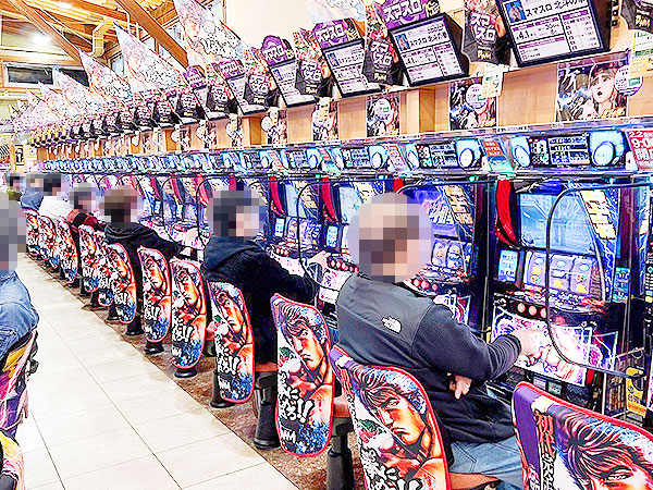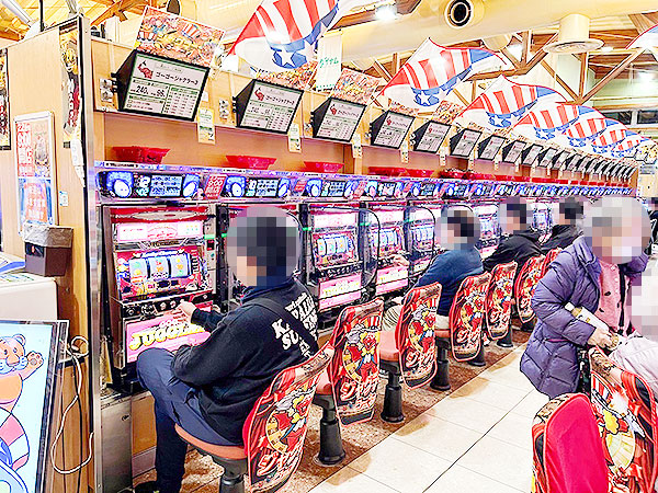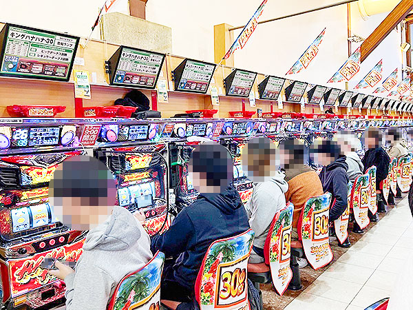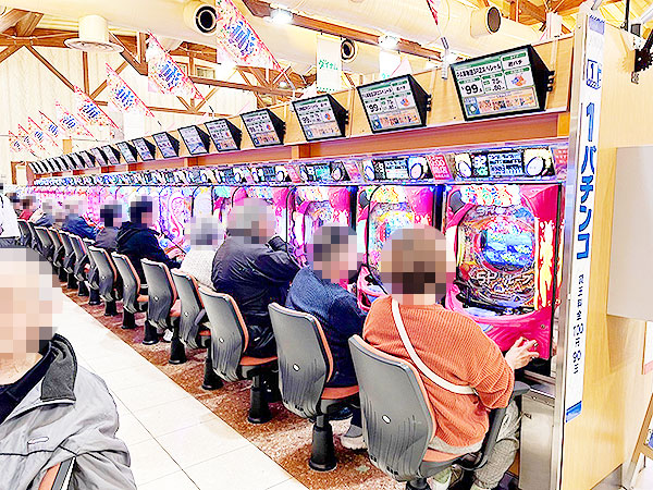 100円/90玉パチンコを見てみると、海物語シリーズに人気が集まっており、ほぼ満席となるほどのにぎわいを見せていた。