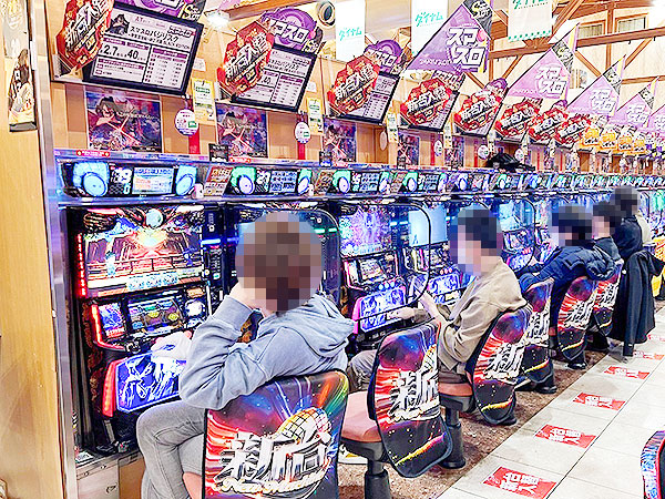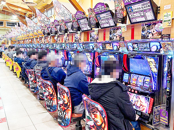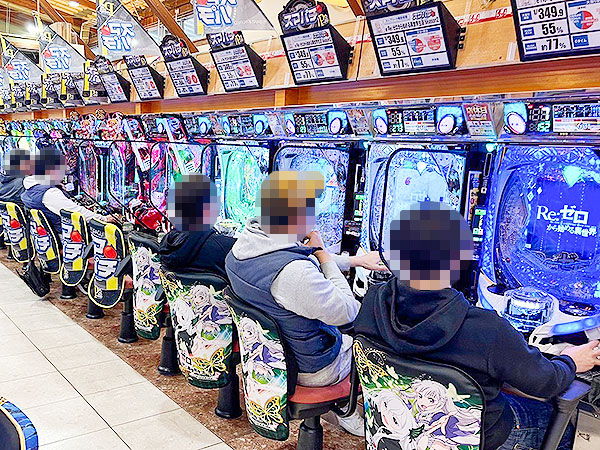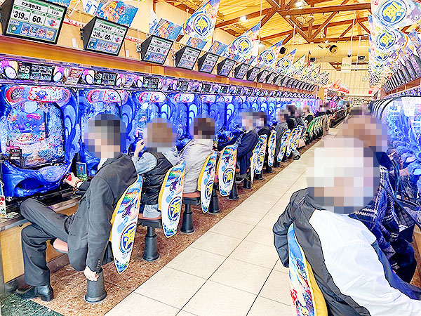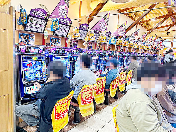 取材時、店内には既に多くのプレイヤーが集結。各人、あふれんばかりの笑顔を見せながら遊技を楽しんでいた。
