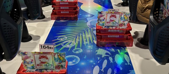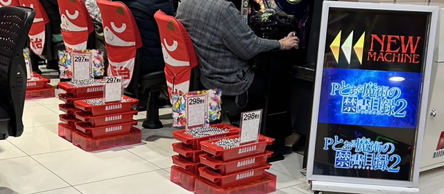 パチスロでは前回に続いて『スマスロ北斗』が高水準をキープ、パチンコでは足元のドル箱が連なる様が印象的だった。なお上写真の様に導入直後の『Pとある魔術の禁書目録2』5台も盛況となっていた。
