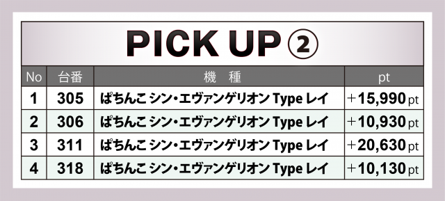 『ぱちんこ シン・エヴァンゲリオン Type レイ』16台のプラス率は約56%(9台)と半数強、311番台が+2万オーバーを達成。