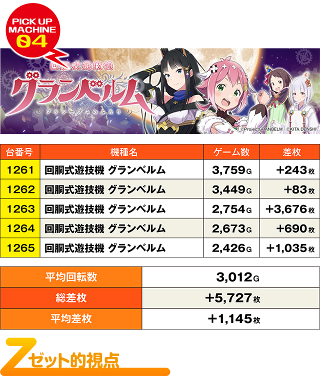 もしや全5台の『回胴式遊技機 グランベルム』も全台系だった…?それを裏付けるかのように、少ない総回転数にも関わらず5台ともがしっかりプラスに!