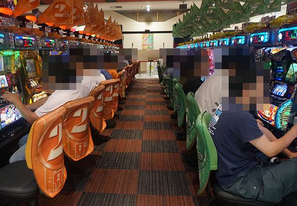 2種類あるパチスロの低貸し玉コーナーにおいても、プレイヤーたちの表情は明るい。