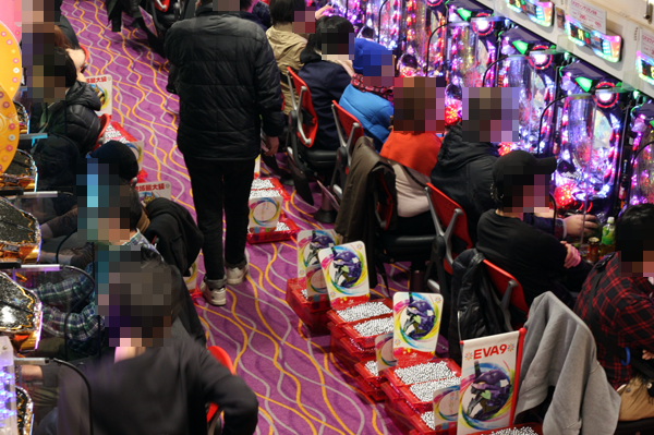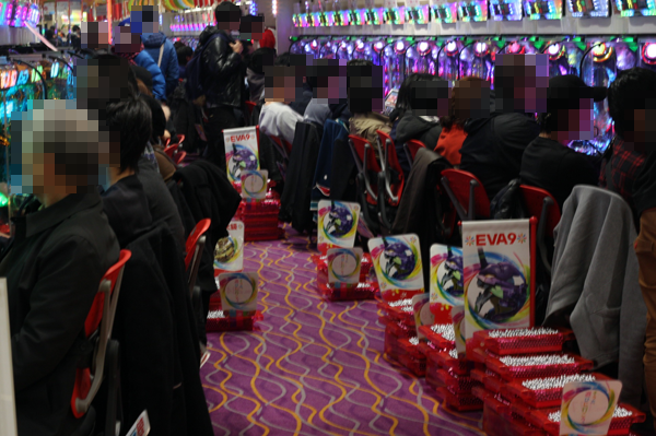まずはパチンココーナーの状況を見に行くと、最新台の「CRヱヴァンゲリオン9」が即満席。「ぱちんこCR北斗の拳6拳王」や「CR牙狼 金色になれ」といった定番機種や1パチコーナーも人気となっていた。
