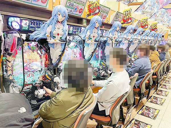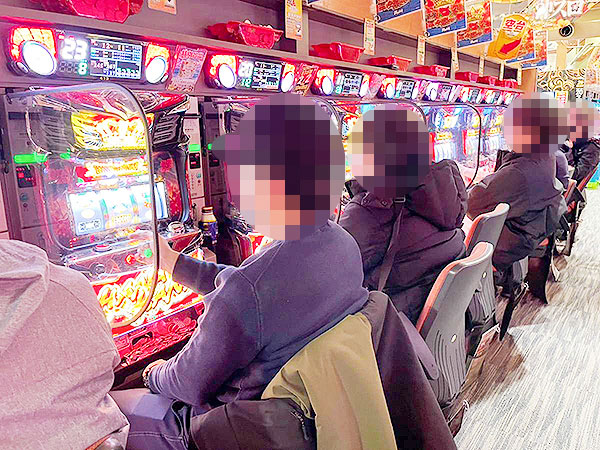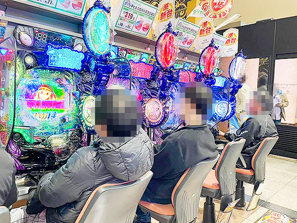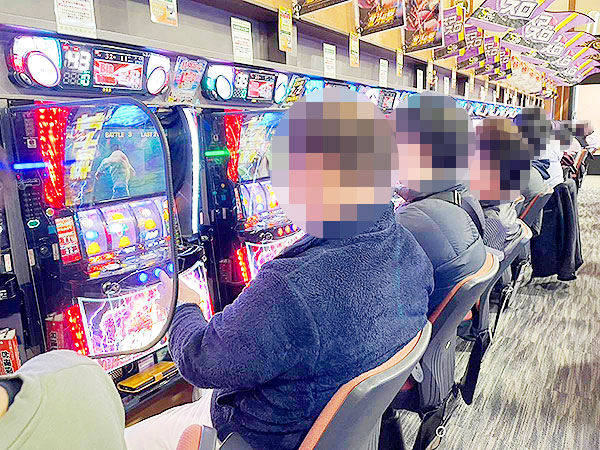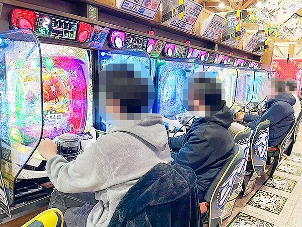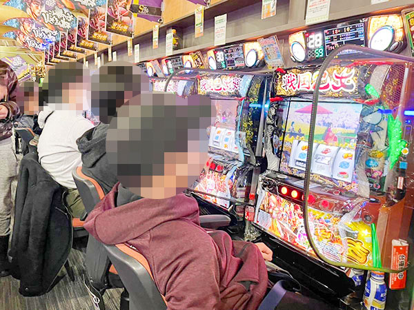 取材時は既に多くのプレイヤーが集結し、パチンコ・パチスロを問わずにぎやかな状況となっていた。
