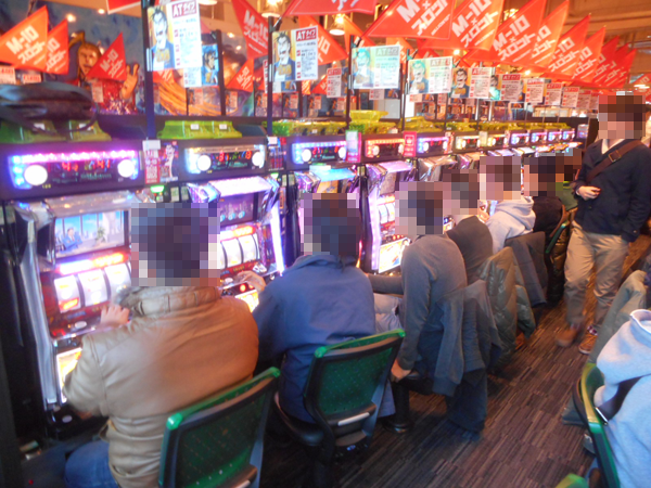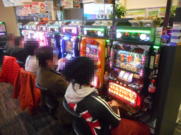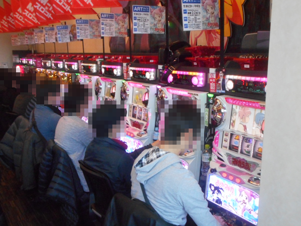 お昼を過ぎる頃には稼働は抜群に高くなり、店内を見渡しても空いている台はほとんどない。