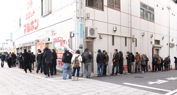 今回のREAL取材は、まず人の多さに圧倒された。開店前の状況に驚いた表情を見せるプレイヤーがいたことからもわかるように「マルホン」の注目度の高さは抜群である。