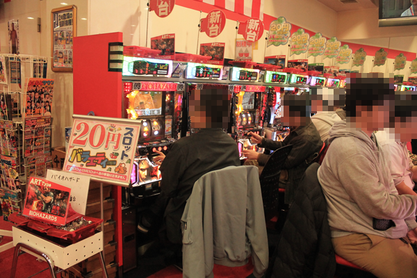 20円パチスロではジャグラーシリーズに空席はなく、ほかの機種でも「サラリーマン金太郎 出世回胴編」、「押忍!サラリーマン番長」、「スーパービンゴネオ」、「パチスロ モンスターハンター 月下雷鳴」などなど、多数の機種で驚くほどの盛り上がりを見せていた。