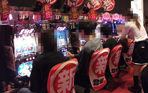 開店直後のパチスロで、いち早く満席となったのは新台の「パチスロ北斗の拳 修羅の国篇」。