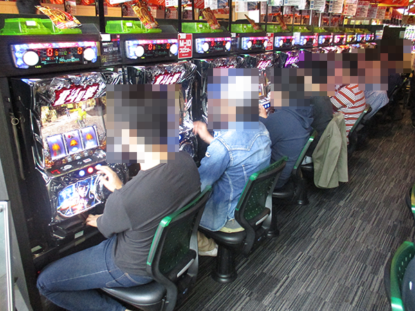 開店直後のホール内をみると、20円パチスロに満席となっている機種が続出。新台の「パチスロ北斗の拳 修羅の国篇」を筆頭に、「SLOT魔法少女まどか☆マギカ2」や「バジリスク~甲賀忍法帖~絆」などが注目を集めていた。