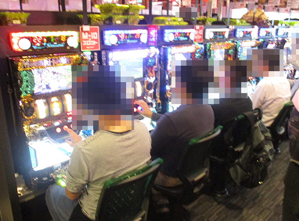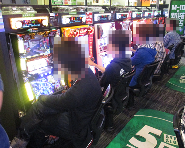 16時頃の20円パチスロでは朝イチに引き続き、「パチスロ北斗の拳 修羅の国篇」や「SLOT魔法少女まどか☆マギカ2」が盛況。理想的ともいえる展開で遊技をおこなっているプレイヤーの姿もみられ、大きくにぎわっていた。