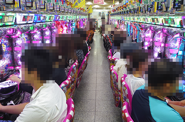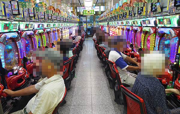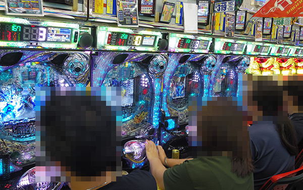 15時頃の4円パチンコでは、海物語シリーズが盛況。なかでも、満席であった「CRAスーパー海物語 IN JAPAN with 桃太郎電鉄」の活躍が目立っていた。