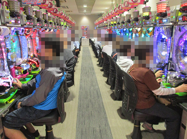 1円パチンコもほぼ満席といった状況。