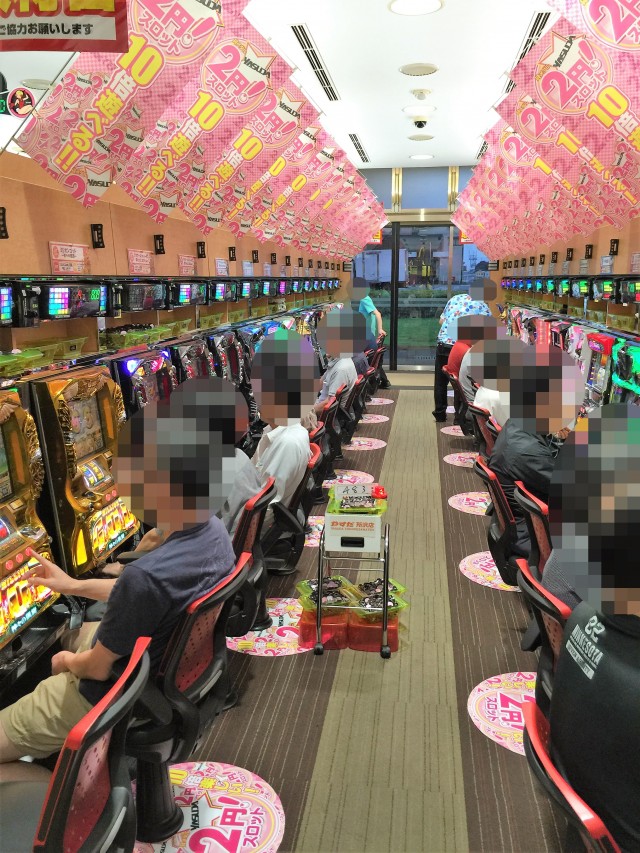 2円スロットコーナーにもたくさんのプレイヤーが遊技していて、特に「ミリオンゴッド-神々の凱旋-」「アナザーゴッドハーデス-奪われたZEUSver.-」などの高純増機に人気が集中し、シマ一帯を華やかにみせる活躍をしていた。