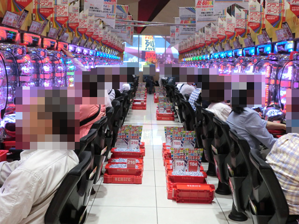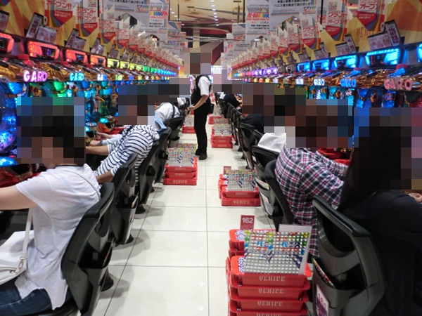 2種類あるパチンコの低貸し玉も好評。どちらのコーナーをみても、満席に近い状況となっており、にぎやかな雰囲気に包まれていた。