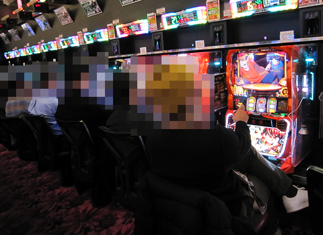 「スマスロバジリスク~甲賀忍法帖~絆2 天膳 BLACK EDITION」は7台中5台が埋まっており、にぎやかなムードに包まれていた。