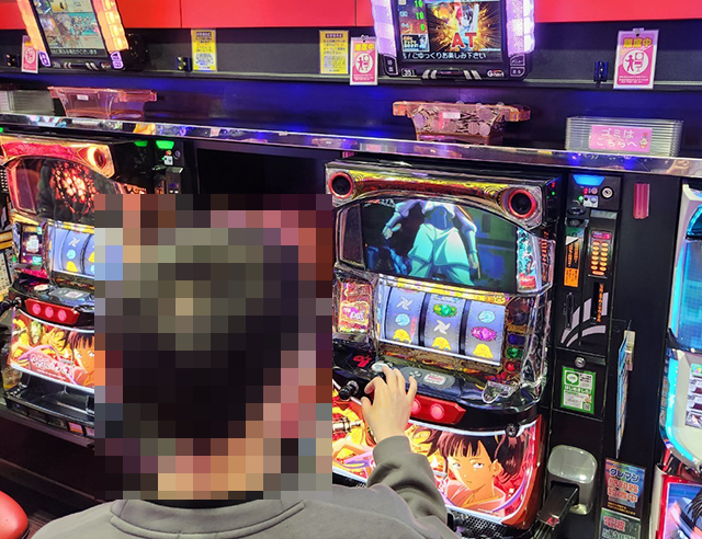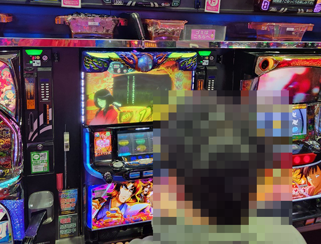 「パチスロ甲鉄城のカバネリ」でも、持ち玉で遊技をおこなっているプレイヤーを確認。笑みを浮かべている姿からも、有意義な時間を過ごしていることがうかがえた。