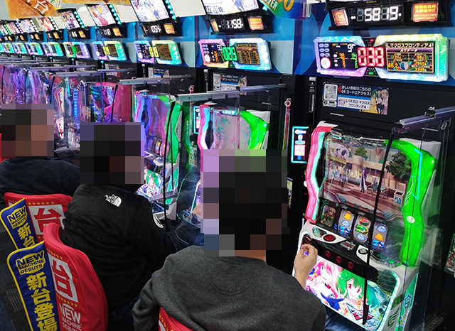 全台が埋まっており、15時の時点で大当り回数が36回となっている台もあった。