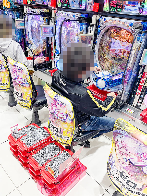 14時ごろの4円パチンコでは「P Re:ゼロから始める異世界生活 鬼がかりver.」や「P真・一騎当千~桃園の誓い~」、「Pとある魔術の禁書目録2」で好調なプレイヤーが見受けられ、時折見せる嬉しそうな表情が印象に残っている。