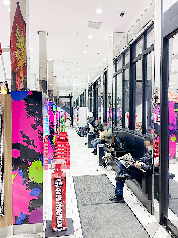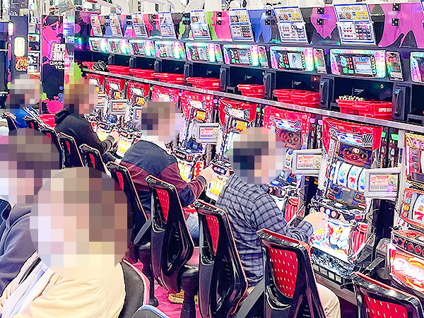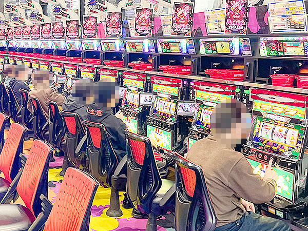 この日はあいにくの天候にも関わらず多くのプレイヤーが集結。パチンコ・パチスロともにプレイヤーの笑顔であふれていた。