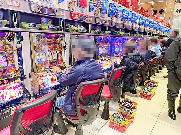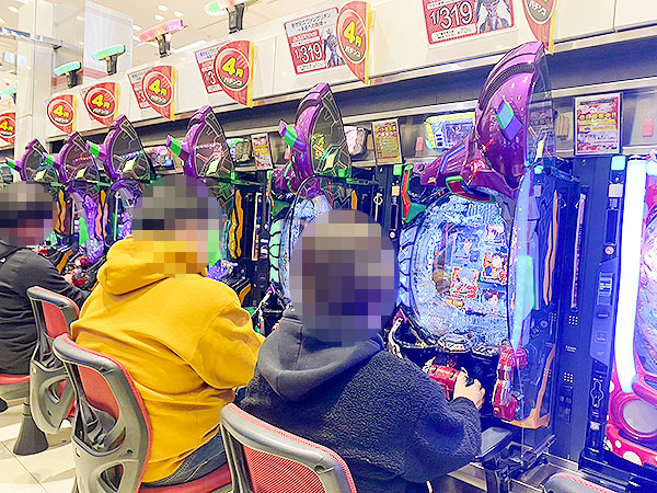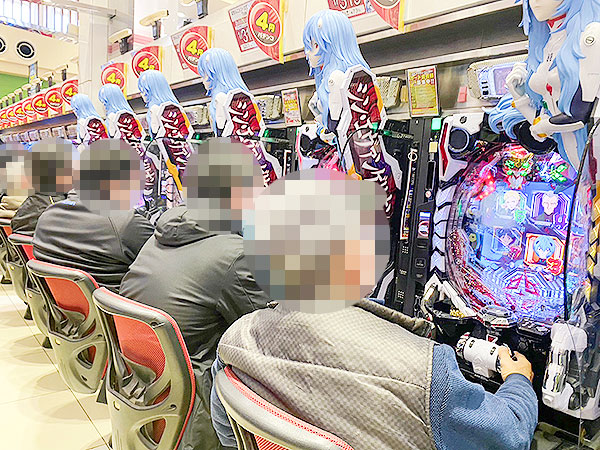14時半ごろの4円パチンコでは「P大海物語5」や「新世紀エヴァンゲリオン〜未来への咆哮〜」が人気で、プレイヤーの嬉しそうな表情を多数確認している。