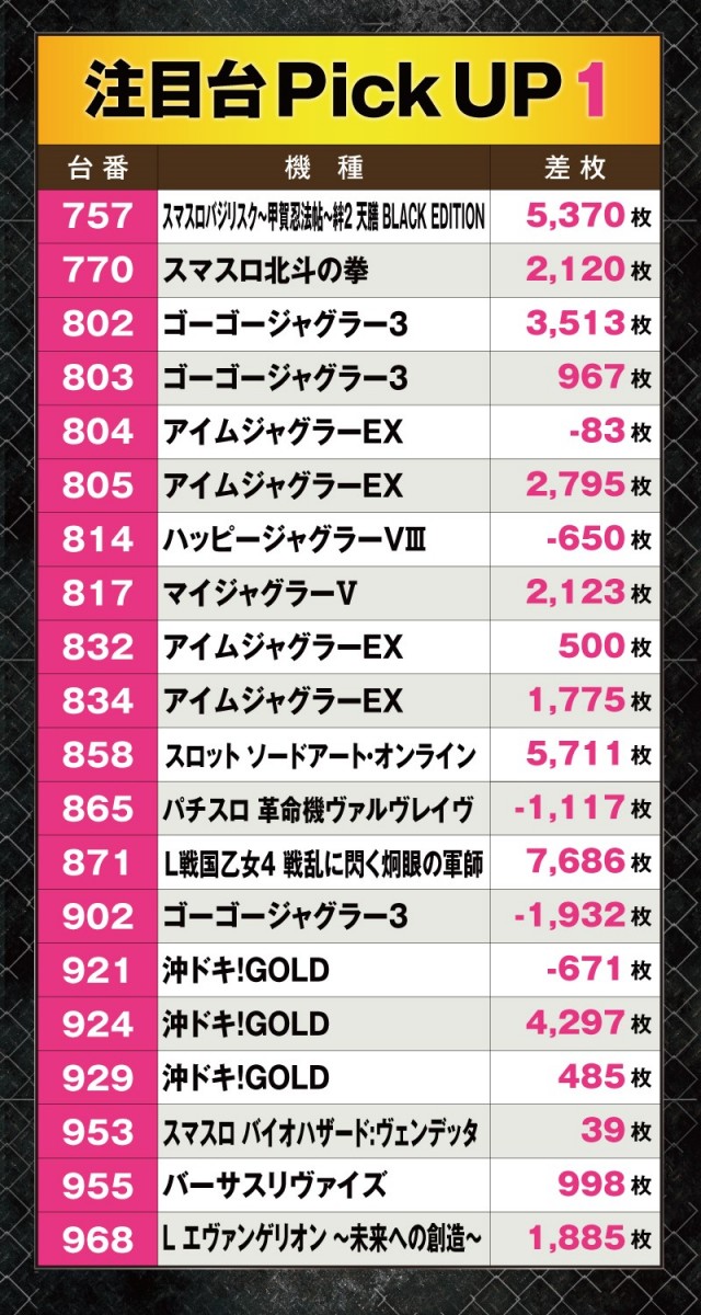 今回は20台の好調台が誕生していた。