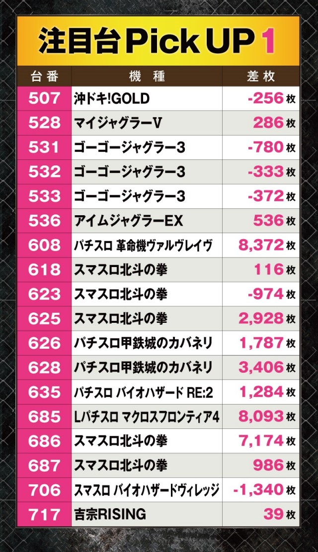 今回もスマスロ・6.5号機・ジャグラーシリーズと至る所に好調台が誕生する結果となった。次回開催時にはこれらを参考に、是非チャンスを掴んでくれ!
