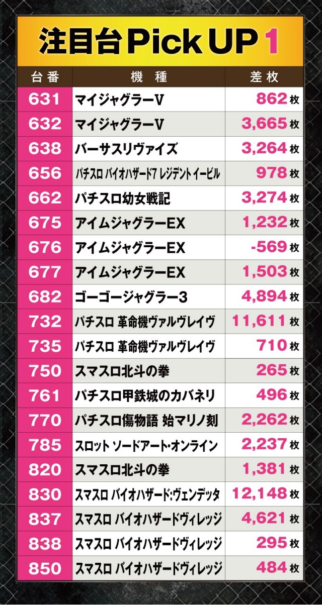 『パチスロ 革命機ヴァルヴレイヴ』と『スマスロ バイオハザード:ヴェンデッタ』の活躍が特に目立っており、なんと万枚超えを達成していた!