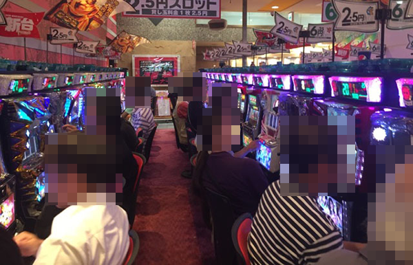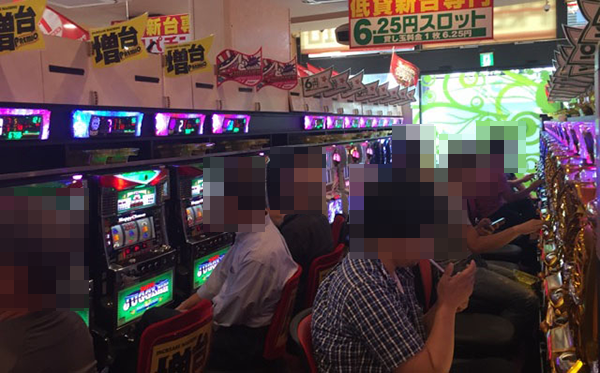 16時半をまわった頃のパチンコでは、1.25円パチンコがひときわ人気。