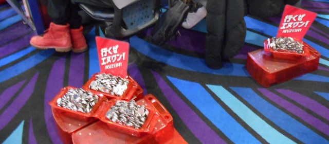 当日は雪降る中であったが、週末の土曜ということで多くのファンで賑わいを見せた。今回も上写真の通り、足元に数々のドル箱が並び好況であったことが早くも伝わってくる。