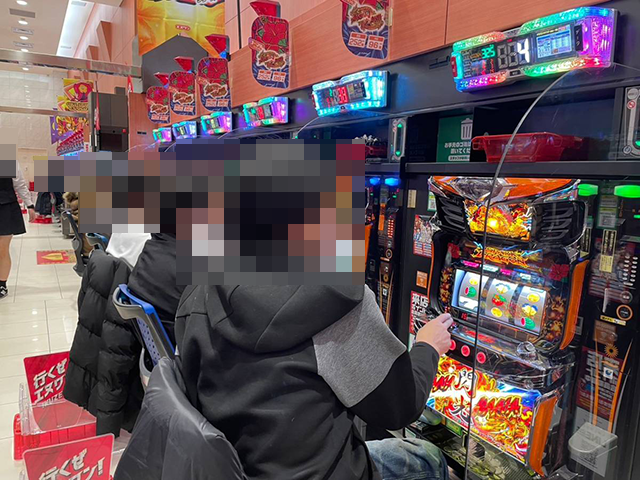 「沖ドキ!GOLD-30」でも、2箱や3箱の持ち玉を使い遊技をおこなっている姿を目撃。