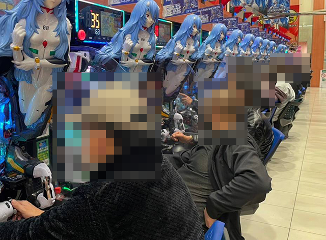 「ぱちんこ シン・エヴァンゲリオン Type レイ」も満席かつ盛況となっており、大当り回数がすでに39回や35回の台があった。