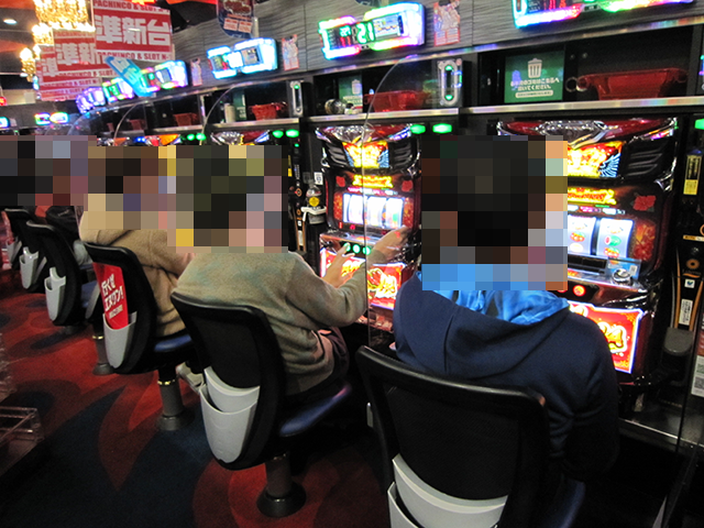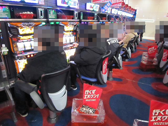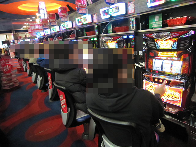 パチスロもパチンコもにぎわいをみせていた「エヌワン三条店」。