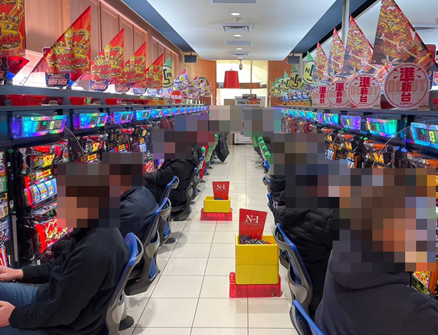 パチスロだけではなく、パチンコからも活気が感じられた「エヌワン葛塚店」。機種を問わずに、有意義な時間を過ごしていることが、楽しそうな姿から伝わってきた。
