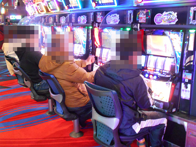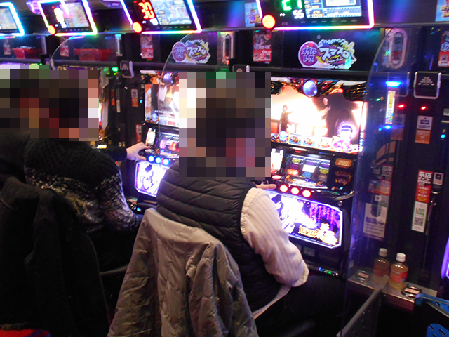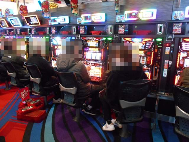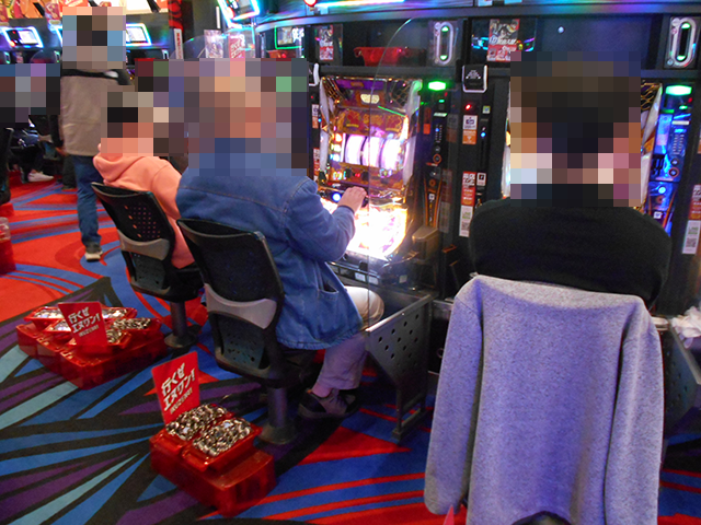 パチスロでは沖スロの稼働率がとくに高く、「沖ドキ!GOLD-30」をみると、6箱や5箱の持ち玉を使って遊技をおこなっているプレイヤーがいた。
