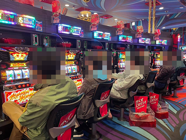 「スマスロバジリスク~甲賀忍法帖~絆2 天膳 BLACK EDITION」の稼働率も高く、うれしそうな表情をみせるプレイヤーが並んでいた。